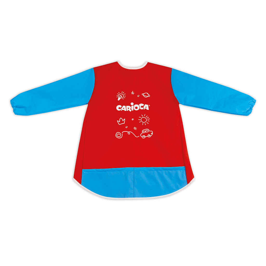 Nepromokavá zástěra s dlouhými rukávy a kapsami pro děti od 2-4 let má nastavitelné zapínání na suchý zip. Na zástěře je místo k napsání jména, aby každé dítě mělo tu svou. Dá se pohodlně prát v pračce na 30 °C.