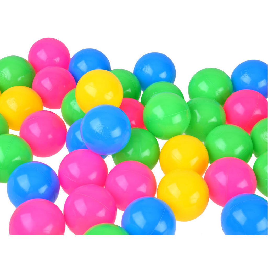 Sada barevných míčků je ideální do suchého bazénu nebo i bazénu s vodou. V síti je 100 míčků v barvách růžový, žlutý, zelený a modrý. Míčky jsou měkké, nafouknuté vzduchem, ideální pro různé typy her. Po deformaci se snadno vrátí do svého tvaru a jsou bezpečná i při házení. Rozměry: ø 6,5 cm. Materiál: plast. Věk: 3+.