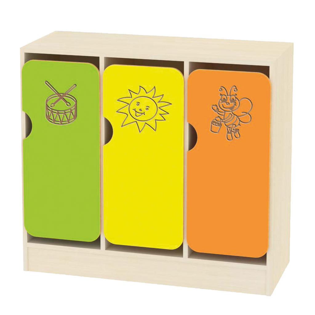 Šatny jsou vyrobeny z 18 mm DTD desky, která má zaoblenou ABS bezpečnostní hranu o tloušťce 2 mm. Dvířka jsou vyrobena ze 12 mm MDF desky, mají zaoblenou hranu. Na dvířka lze frézovat vzory, na výběr máte 92 motivů. Každá přihrádka má dva dvojité háčky, které jsou umístěny naproti sobě. Na požádání, za příplatek 80 Kč na jednu buňku, můžeme vyrobit šatnu is tyčí na ramínko. V tom případě za kód připište písmeno T. Na výběr máte korpus javor nebo buk