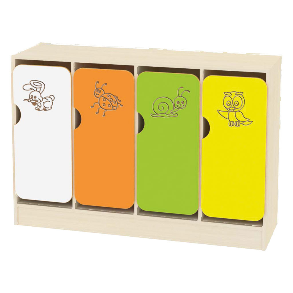 Šatny jsou vyrobeny z 18 mm DTD desky, která má zaoblenou ABS bezpečnostní hranu o tloušťce 2 mm. Dvířka jsou vyrobena ze 12 mm MDF desky, mají zaoblenou hranu. Na dvířka lze frézovat vzory, na výběr máte 92 motivů. Každá přihrádka má dva dvojité háčky, které jsou umístěny naproti sobě. Na požádání, za příplatek 80 Kč na jednu buňku, můžeme vyrobit šatnu is tyčí na ramínko. V tom případě za kód připište písmeno T. Na výběr máte korpus javor nebo buk