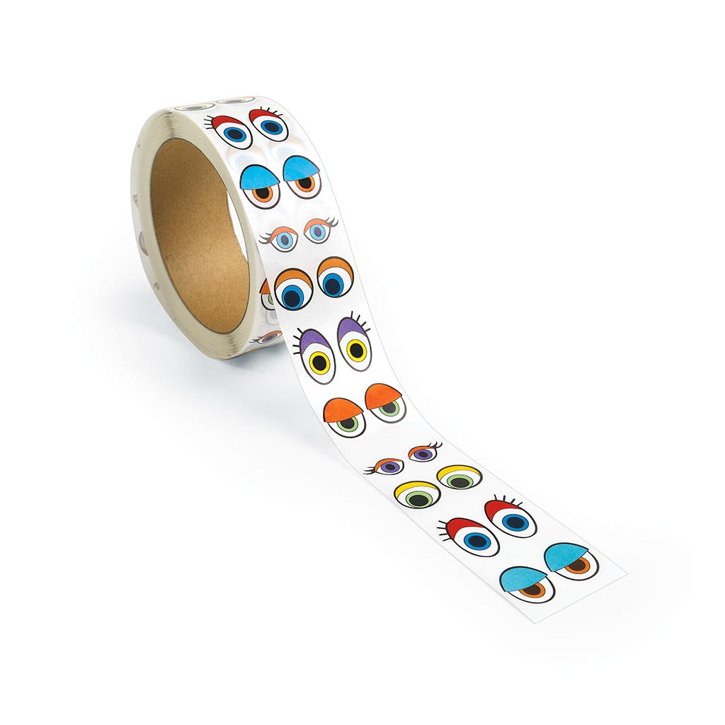 Na této snadno skladovatelné roli je 2 000 barevných nálepek očí různých velikostí. Nálepky se snadno odlepují, jsou netoxické a bezpečné pro děti. Materiál: papír. Rozměry: 1 - 2 cm. Věk: 3+.