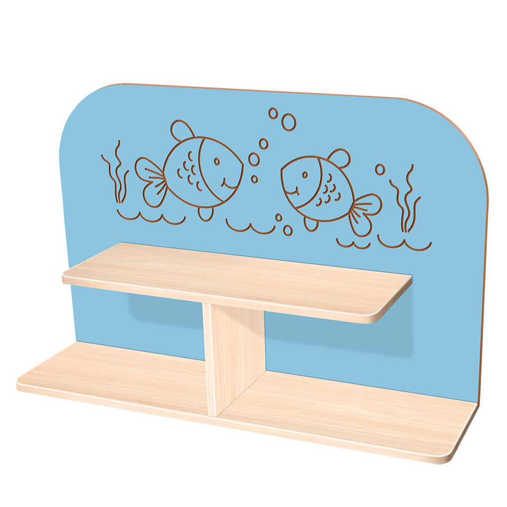 Dekorační police jsou vyrobeny z DTD desky o tloušťce 18 mm, dekorační zadní část je z 12 mm MDF desky. Police mají bohatý úložný prostor, hloubku od 25 cm a šířku až 1 m. Policová část se vyrábí ve dvou druzích dřevodekoru - javor nebo buk. Dekorační police jsou nejen praktické, zároveň jsou velmi pěkným doplněním dětské herny. Můžete je použít jako samostatný kus nábytku, nebo jako součást nábytkových sestav.