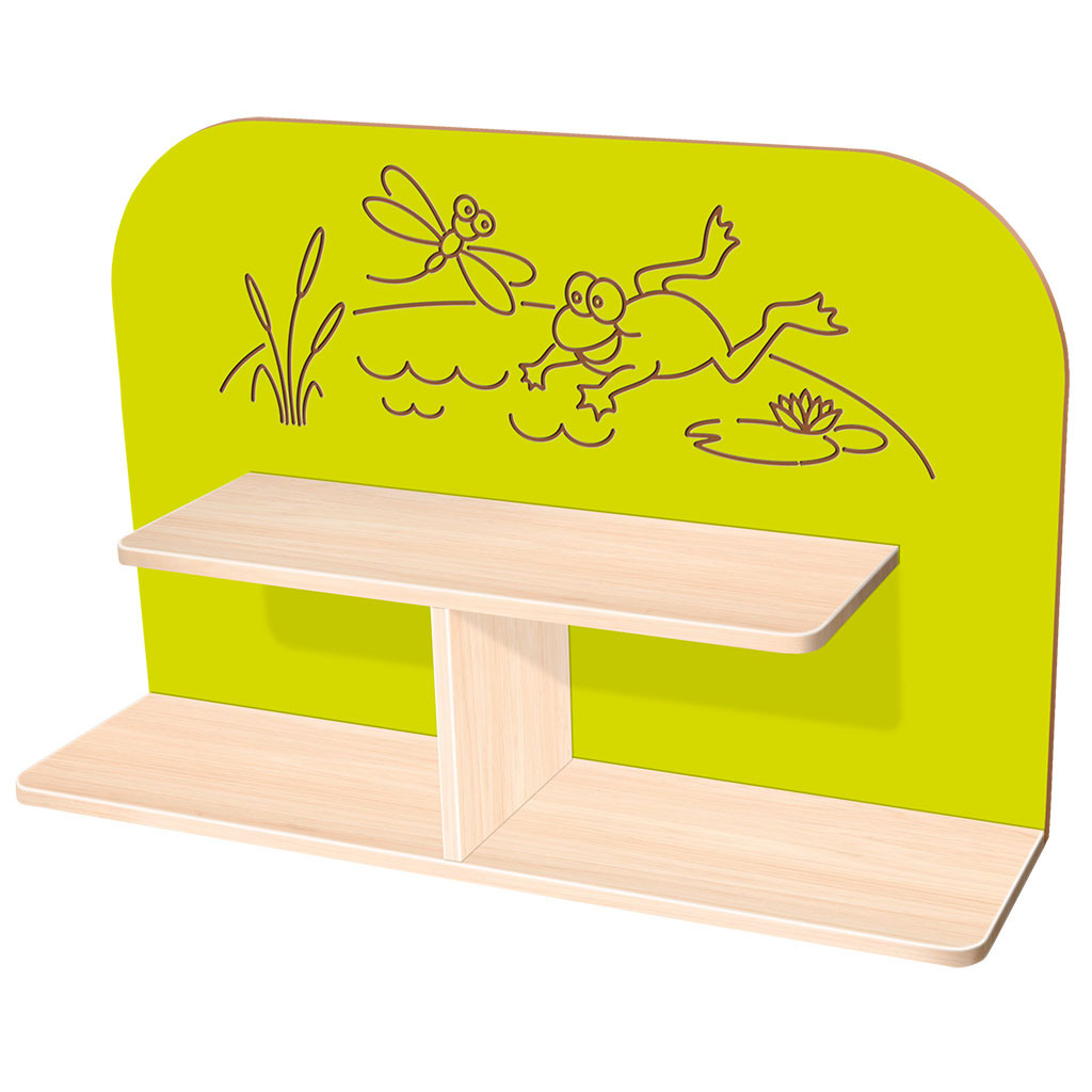 Dekorační police jsou vyrobeny z DTD desky o tloušťce 18 mm, dekorační zadní část je z 12 mm MDF desky. Police mají bohatý úložný prostor, hloubku od 25 cm a šířku až 1 m. Policová část se vyrábí ve dvou druzích dřevodekoru - javor nebo buk. Dekorační police jsou nejen praktické, zároveň jsou velmi pěkným doplněním dětské herny. Můžete je použít jako samostatný kus nábytku, nebo jako součást nábytkových sestav.