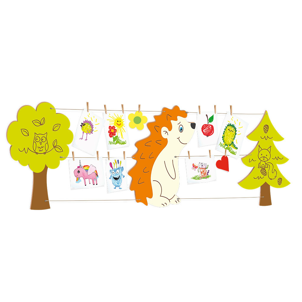 Praktické a pěkné věšáky na zavěšení výkresů zkrášlí každou šatnu či třídu. Vyrobeny jsou z 12 mm MDF desky, oči jsou nálepky. Věšáky dodáváme se šňůrami o délce 2m.
