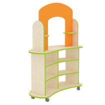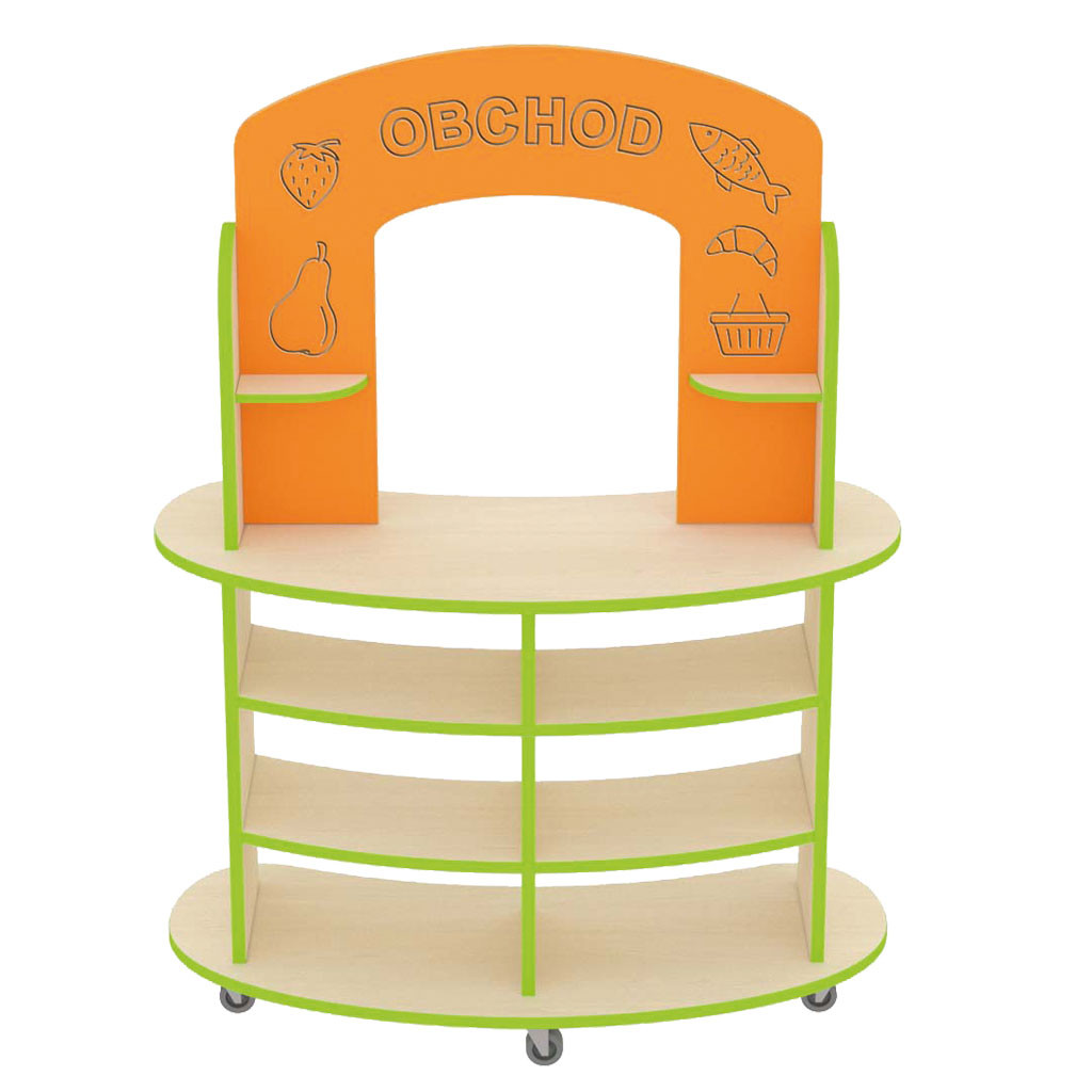 Skříňka Obchod je vyrobena z 18 mm DTD desky, která má zaoblenou ABS bezpečnostní hranu o tloušťce 2 mm. Zadní panel je z 12 mm MDF desky. Stolek je na kolečkách, Vybrat si můžete korpus javor nebo buk.