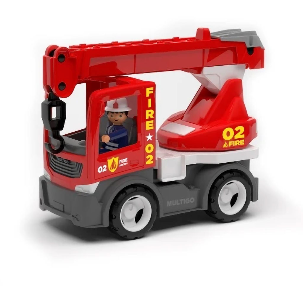 Jeřáb je pojízdný, rameno jeřábu se na základně otáčí, lze jej zvedat a vysunout. Hák jeřábu se ovládá navijákem. Balení obsahuje igráčka hasiče. Rozměry: 27,5 x 20 x 14 cm. Materiál: plast. Věk: 3+.