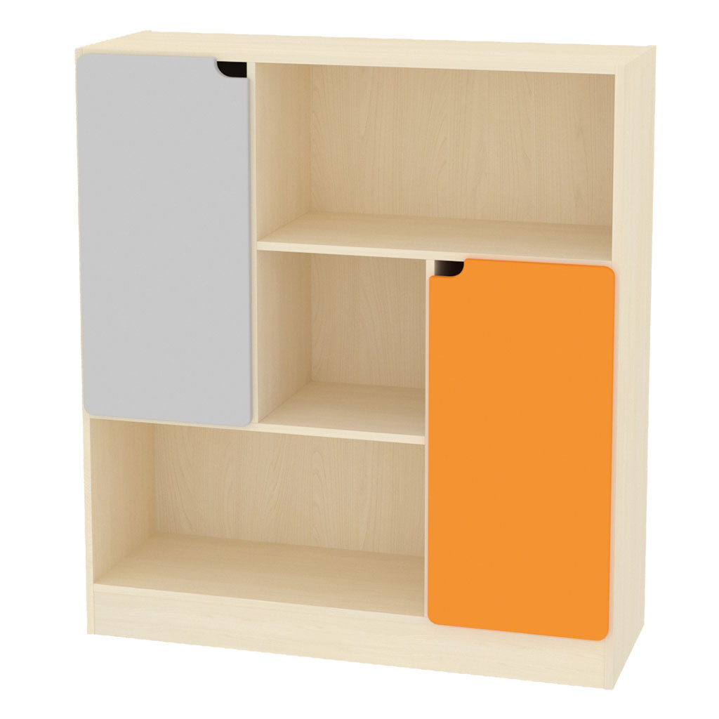 Dvířkové 3D skříňky jsou vyrobeny z 18 mm DTD desky, která má zaoblenou ABS bezpečnostní hranu o tloušťce 2 mm. Dvířka jsou vyrobeny ze 16 mm MDF desky, jsou potaženy barevnou fólií a také mají zaoblenou hranu. Na dvířka se dají frézovat vzory, na výběr máte 92 motivů. Skříňky se liší typem korpusu, počtem a velikostí dvířek. Máte možnost vybrat si skříňku podle našeho návrhu (obrázek), nebo si vytvořit vlastní barevnost skříňky. Vedle hlavního obrázku je přiložen typ korpusu. Na výběr máte korpus javor nebo buk. Police se objednávají samostatně podle typu korpusu, krátké police o rozměru 36,4 x 38 x 1,8 cm jsou určeny pro předělení čtverečních polí o rozměrech 36,4 x 36,4 cm. Dlouhé police o rozměru 74,4 x 38 x 1,8 cm lze použít do obdélníkových polí o rozměrech 74,4 x 36,4 cm.
