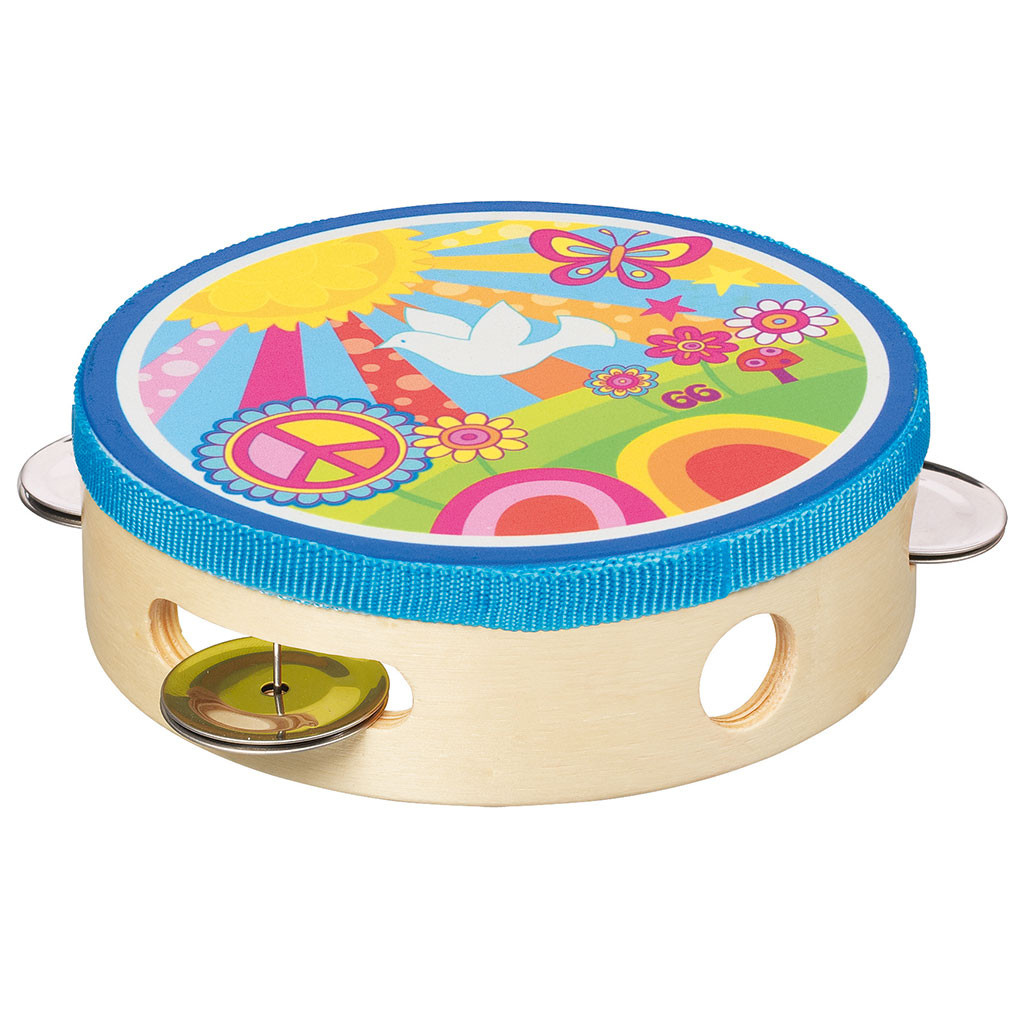 Tamburína s motivem pestrobarevné louky je pro rozvoj hudebního cítění a rytmu jako stvořená. Naučte děti hrát pomalu, rychle nebo dodržovat rytmus písničky. Při hraní si děti také zlepšují koordinaci oko – ruka. Rozměr: ø 14,5 x 4,5 cm. Materiál: dřevo. Věk: 3+.