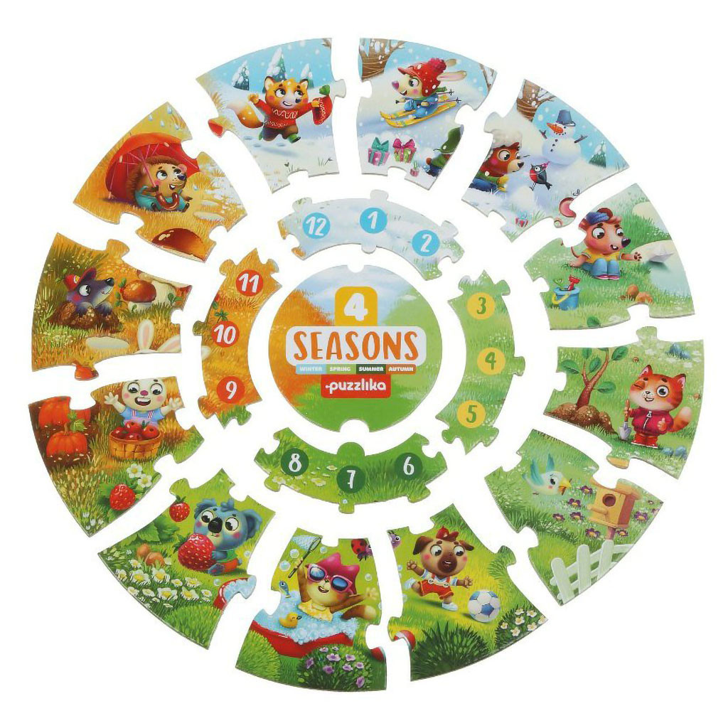 Puzzle obsahuje 17 pevných dílků. Při jejich správném poskládání a přiřazení vznikne jeden velký kulatý obrázek, na kterém jsou znázorněny vnější aktivity spojené s každým kalendářním měsícem. Zároveň se zde děti seznámí také s číslicemi označujícími jednotlivé měsíce v rámci všech čtyř ročních období, které jsou samostatně odděleny od obrázkových dílků. Naučné puzzle rozvíjí u dětí logické myšlení, představivost, kreativitu a jemnou motoriku. Puzzle jsou vyrobeny z velmi pevného vícevrstvého kartonu s lesklým povrchem, který lze otřít vlhkým hadříkem. Průměr složeného obrázku je 28 cm. Materiál: karton. Věk: 2+.