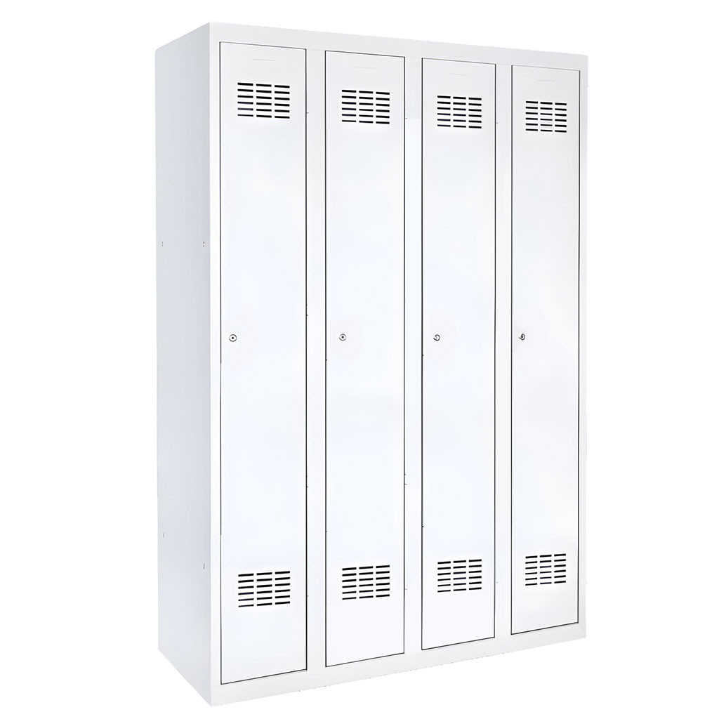 Skříň má montovanou ocelovou konstrukci s práškovou barvou RAL7035. Uvnitř je odkládací police, tyč na ramínka, držák na ručník nebo zrcátko a háčky na zavěšování šatů. Na dveřích jsou v horní i dolní části větrací otvory a bezpečnostní zámek (se 2 klíči).