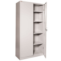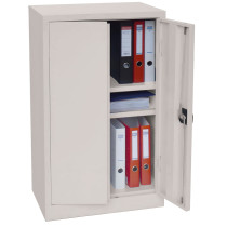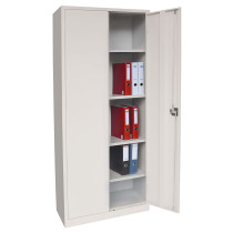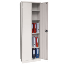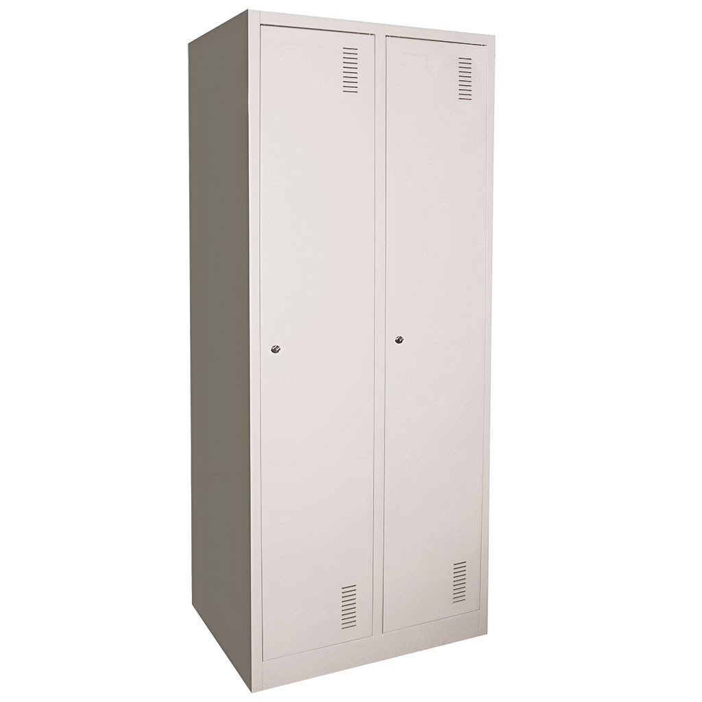 Skříň z ocelové konstrukce s práškovou barvou RAL 5012 je dodávána v demontu. Uvnitř je odkládací police, tyč na ramínka a háčky na zavěšování šatů. Na dveřích jsou v horní i dolní části větrací otvory a cylindrický zámek (se 2 klíči).