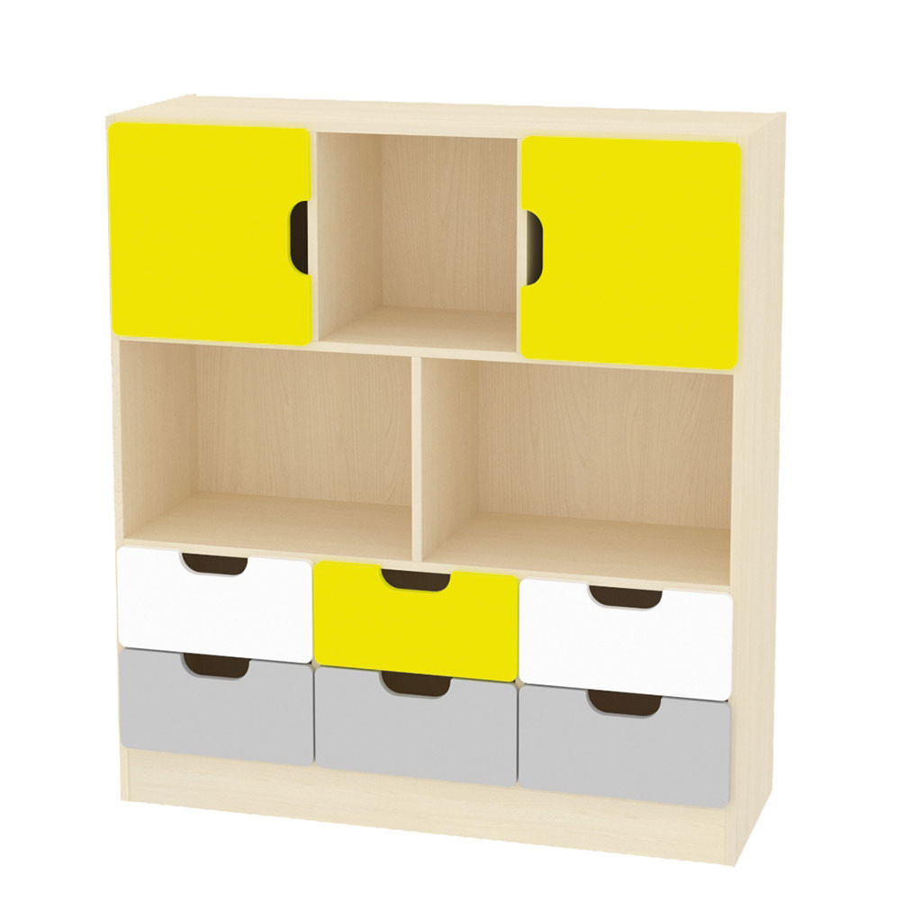 Kombinované 3D skříňky jsou vyrobeny z 18 mm DTD desky, která má zaoblenou ABS bezpečnostní hranu o tloušťce 2 mm. Dvířka jsou vyrobeny ze 16 mm MDF desky, jsou potaženy barevnou fólií a také mají zaoblenou hranu. Na dvířka se dají frézovat vzory, na výběr máte 92 motivů. Liší se typem korpusu, počtem a velikostí kontejnerů a dvířek. Máte možnost vybrat si skříňku podle našeho návrhu (obrázek), nebo si vytvořit vlastní barevnost skříňky. Vedle hlavního obrázku je přiložen typ korpusu. Na výběr máte korpus javor nebo buk.