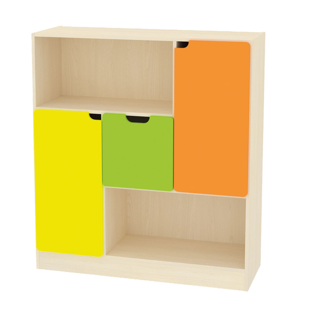 Kombinované 3D skříňky jsou vyrobeny z 18 mm DTD desky, která má zaoblenou ABS bezpečnostní hranu o tloušťce 2 mm. Dvířka jsou vyrobeny ze 16 mm MDF desky, jsou potaženy barevnou fólií a také mají zaoblenou hranu. Na dvířka se dají frézovat vzory, na výběr máte 92 motivů. Liší se typem korpusu, počtem a velikostí kontejnerů a dvířek. Máte možnost vybrat si skříňku podle našeho návrhu (obrázek), nebo si vytvořit vlastní barevnost skříňky. Vedle hlavního obrázku je přiložen typ korpusu. Na výběr máte korpus javor nebo buk.