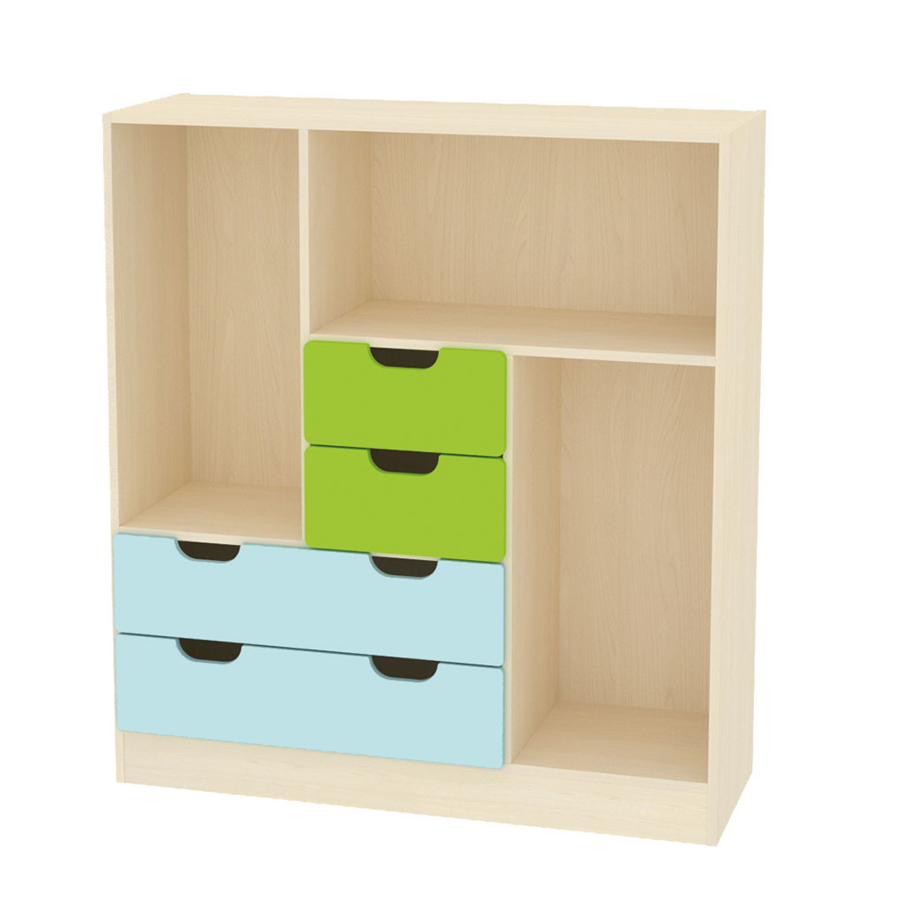 Kontejnerové 3D skříňky jsou vyrobeny z 18 mm DTD desky, která má zaoblenou ABS bezpečnostní hranu o tloušťce 2 mm. Čela kontejnerů jsou vyrobeny ze 16 mm MDF desky, jsou potaženy barevnou fólií a také mají zaoblenou hranu. Na čela se dají frézovat vzory, na výběr máte 92 motivů. Liší se typem korpusu, počtem a velikostí kontejnerů. Máte možnost vybrat si skříňku podle našeho návrhu (obrázek), nebo si vytvořit vlastní barevnost skříňky. Vedle hlavního obrázku je přiložen typ korpusu. Na výběr máte korpus javor nebo buk.