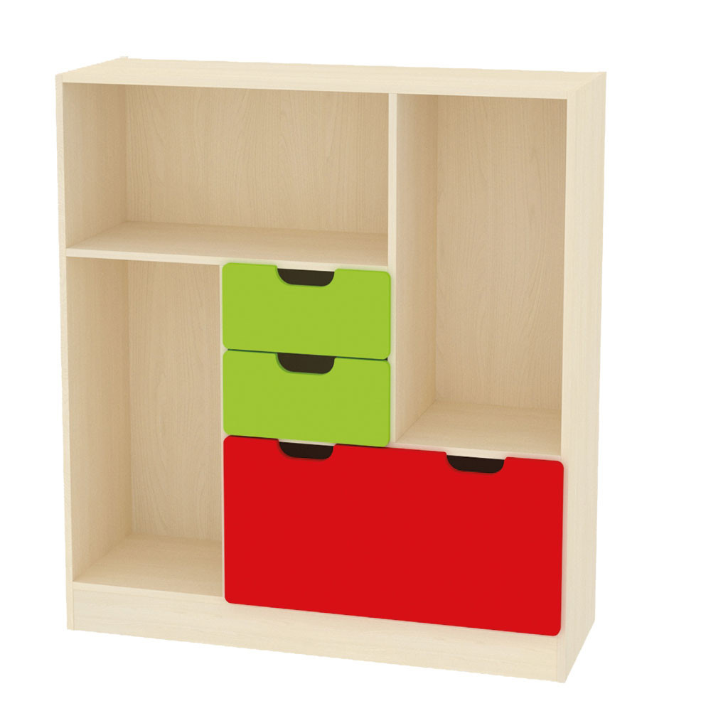 Kontejnerové 3D skříňky jsou vyrobeny z 18 mm DTD desky, která má zaoblenou ABS bezpečnostní hranu o tloušťce 2 mm. Čela kontejnerů jsou vyrobeny ze 16 mm MDF desky, jsou potaženy barevnou fólií a také mají zaoblenou hranu. Na čela se dají frézovat vzory, na výběr máte 92 motivů. Liší se typem korpusu, počtem a velikostí kontejnerů. Máte možnost vybrat si skříňku podle našeho návrhu (obrázek), nebo si vytvořit vlastní barevnost skříňky. Vedle hlavního obrázku je přiložen typ korpusu. Na výběr máte korpus javor nebo buk.