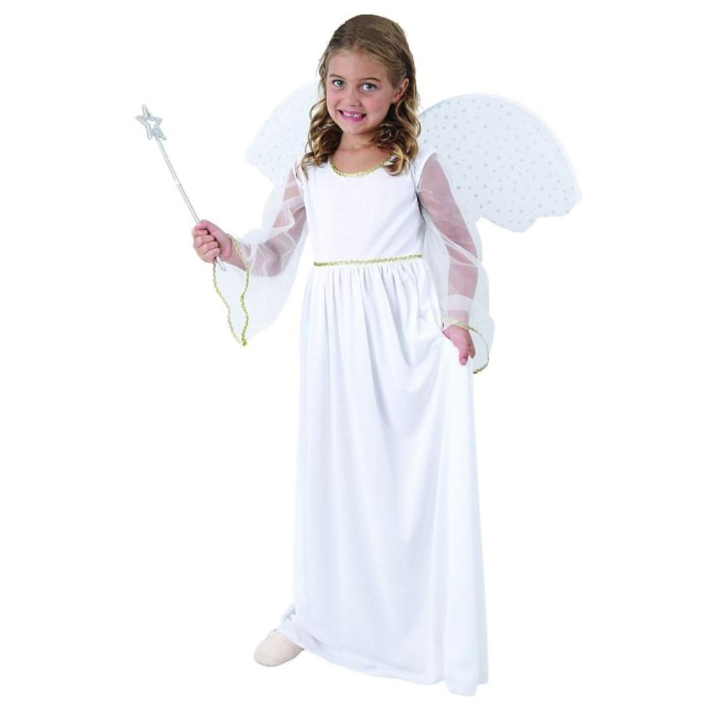 Dívčí šaty anděla určené na karneval. Souprava obsahuje dlouhé šaty a křídla. Vel. 110/120. Celková délka šatů: 92 cm. Materiál: textil. Věk: 3+.