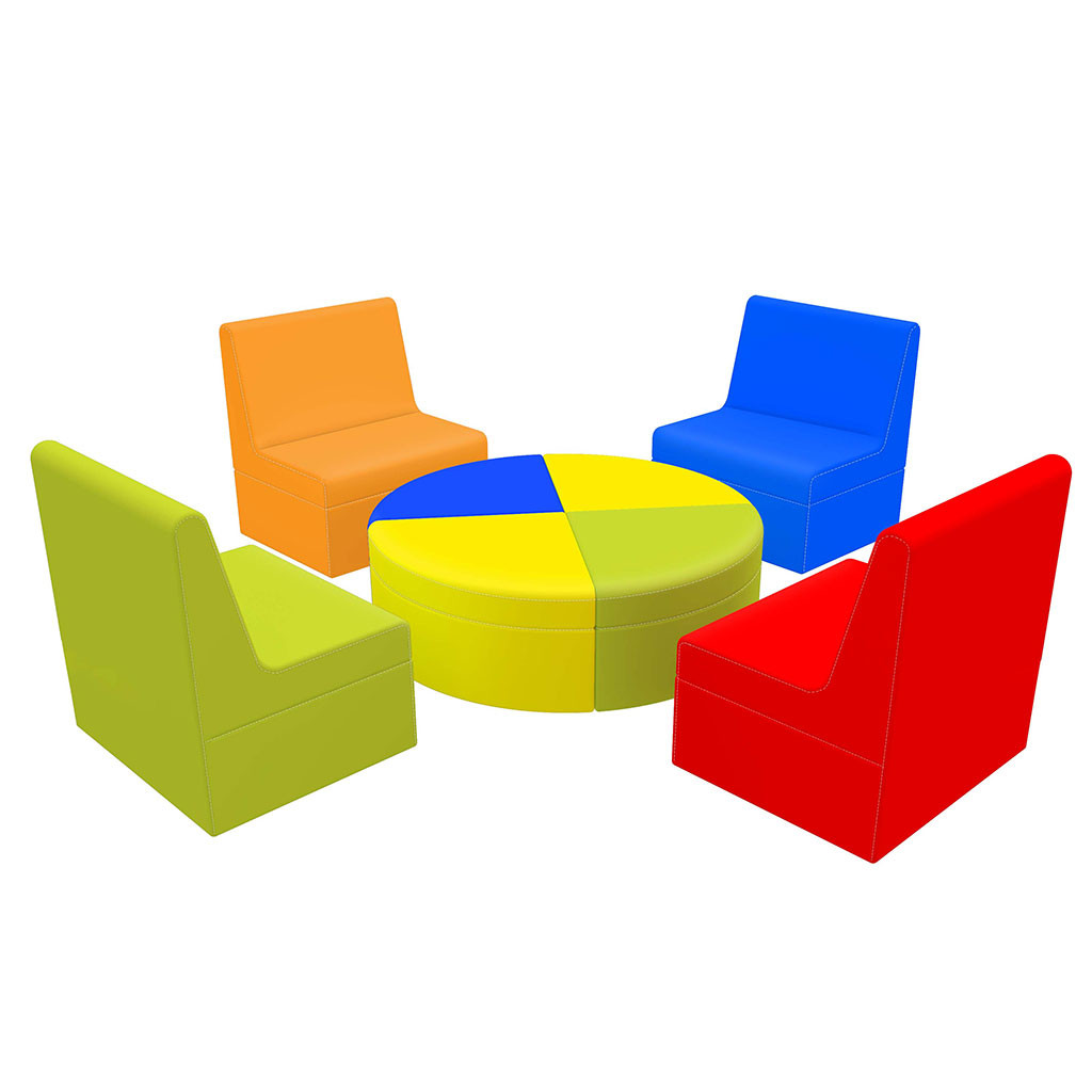 Sedačka je vyrobena z odolného molitanu T35 a potažena kvalitní koženkou. Modulové sezení se skládá ze 4 x čtvrtkruh 45 x 45 x 31 cm, 4x modul 60 x 45 x 66 cm, výška sedu: 31 cm.