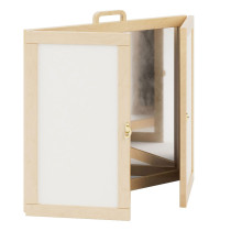 Skládací zrcadlo pro rozvoj řeči a zrcadlovou terapii. Zrcadlo umožňuje dětem vidět se během řečových cvičení frontálně i z profilu. Současné vidění a poslech vlastních slov podporuje přesnou artikulaci. Zrcadlo může stát na stole se skloněnými stranami nebo se může zavěsit na nástěnný držák (není součástí balení) pomocí rukojeti. Vnější strany zavřeného zrcadla jsou bílé. Materiál: dřevo/akryl/kov. Rozměry složeného zrcadla: 56 x 49 x 43 cm. Věk: 3+.