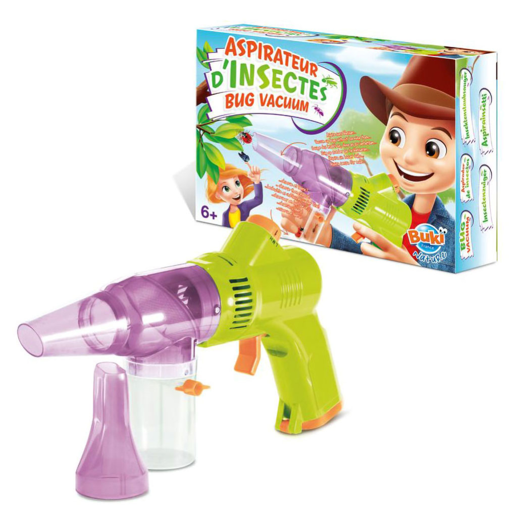 Nechtějí děti chytit do ruky nějakého brouka nebo dokonce pavouka, ale přesto by je chtěly vidět zblízka a prozkoumat je? Potom tento vysavač je přesně to, co potřebujete. Je určen k bezpečnému nasátí hmyzu do připravené nádobky, kde můžete hmyz prozkoumat nebo jej odnést na jiné místo, například z herny ven na zahradu. Součástí vysavače jsou dvě sací hubice a uzavíratelná nádobka pro nasátý hmyz. Vysavač má 3 rychlosti, 1 kontejner a 2 nástavce. Vyžaduje 4x 1,5V AA baterie, nejsou součástí balení. Rozměry balení: 31 x 7 x 26 cm. Věk: 6+.