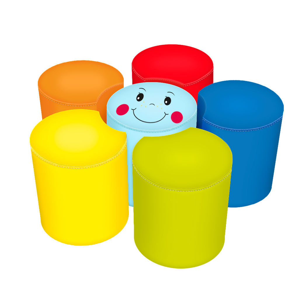 Taburetky jsou vyrobeny z odolného molitanu T35 a potaženy kvalitní koženkou. Jsou vhodné k sezení i různé pohybové činnosti.