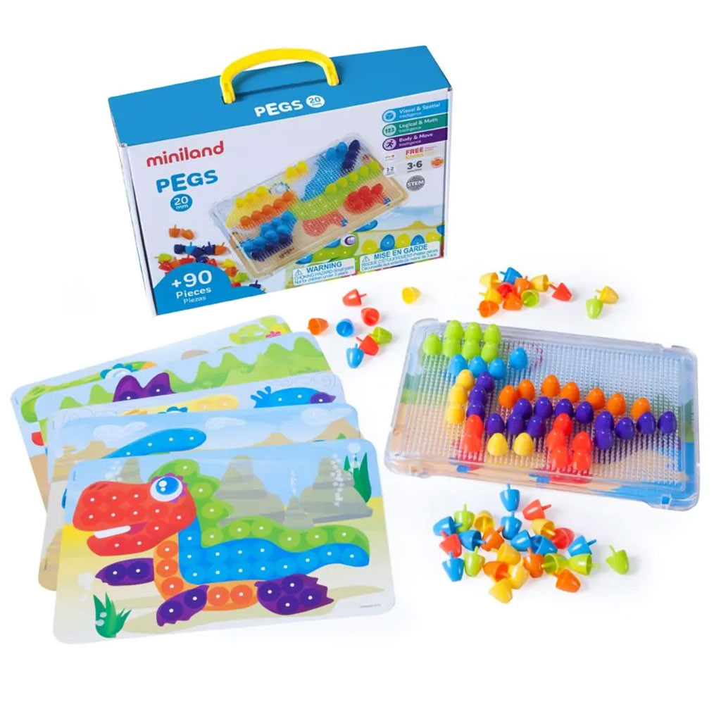 Sada obsahuje: 1 ks průhlednou pracovní desku, 6 ks předloh a 90 ks hříbků. Rozměry tabule: 31 x 21 cm. Materiál: plast/karton. Věk: 3+.