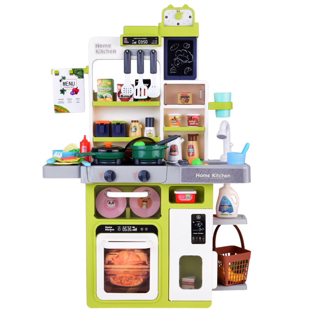 Interaktivní kuchyňka se světly, zvuky, pohyblivými a otevíratelnými realistickými prvky, díky kterým se děti mohou cítit jako skuteční kuchaři. Integrovaná tabule na poznámky umožňuje dítěti psát nebo kreslit křídou. recepty. Hodiny s pohyblivými ručičkami se nacházejí na vrchu kuchyně a pomáhají dětem naučit se určovat čas. Celá sada obsahuje 63 kusů různého náčiní - hrnce, příbory, nádobí, jídlo, talíře, spotřebiče a mnoho jiného příslušenství. Kuchyňka má robustní konstrukci a precizní zpracování. Napájení: 3 x 1,5 V AA baterie (nejsou součástí balení). Rozměry: 80 x 56 x 22 cm. Materiál: plast. Věk: 3+.