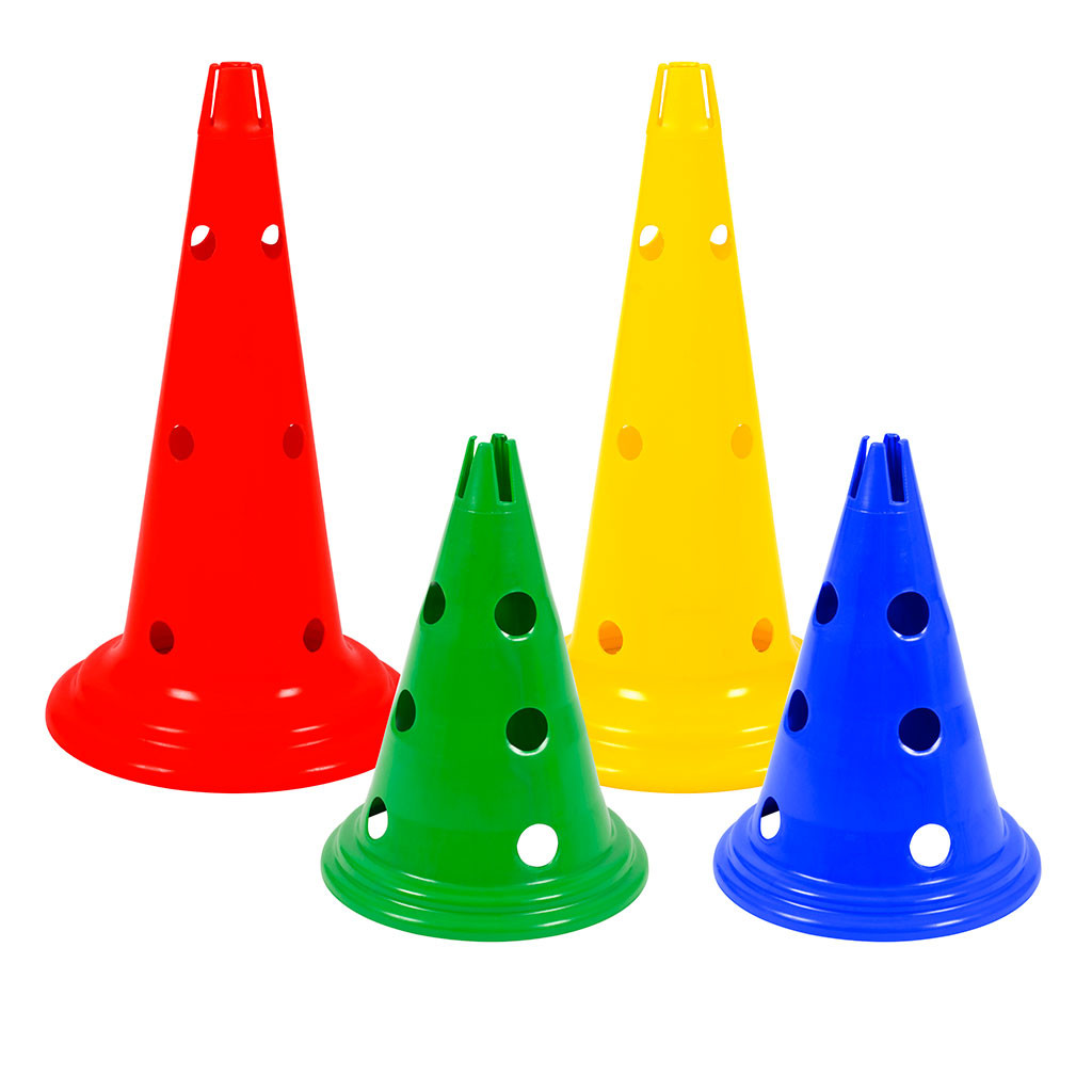 Všestranný sportovní, tréninkový kužel je vybaven 12 otvory, které umožňují sestavovat překážkové dráhy. V horní části má kužel drážky na osazení kruhu. Barevnost je dodávána v závislosti na skladových zásobách. Rozměry: výška 30 cm. Materiál: plast. Věk: 3+.