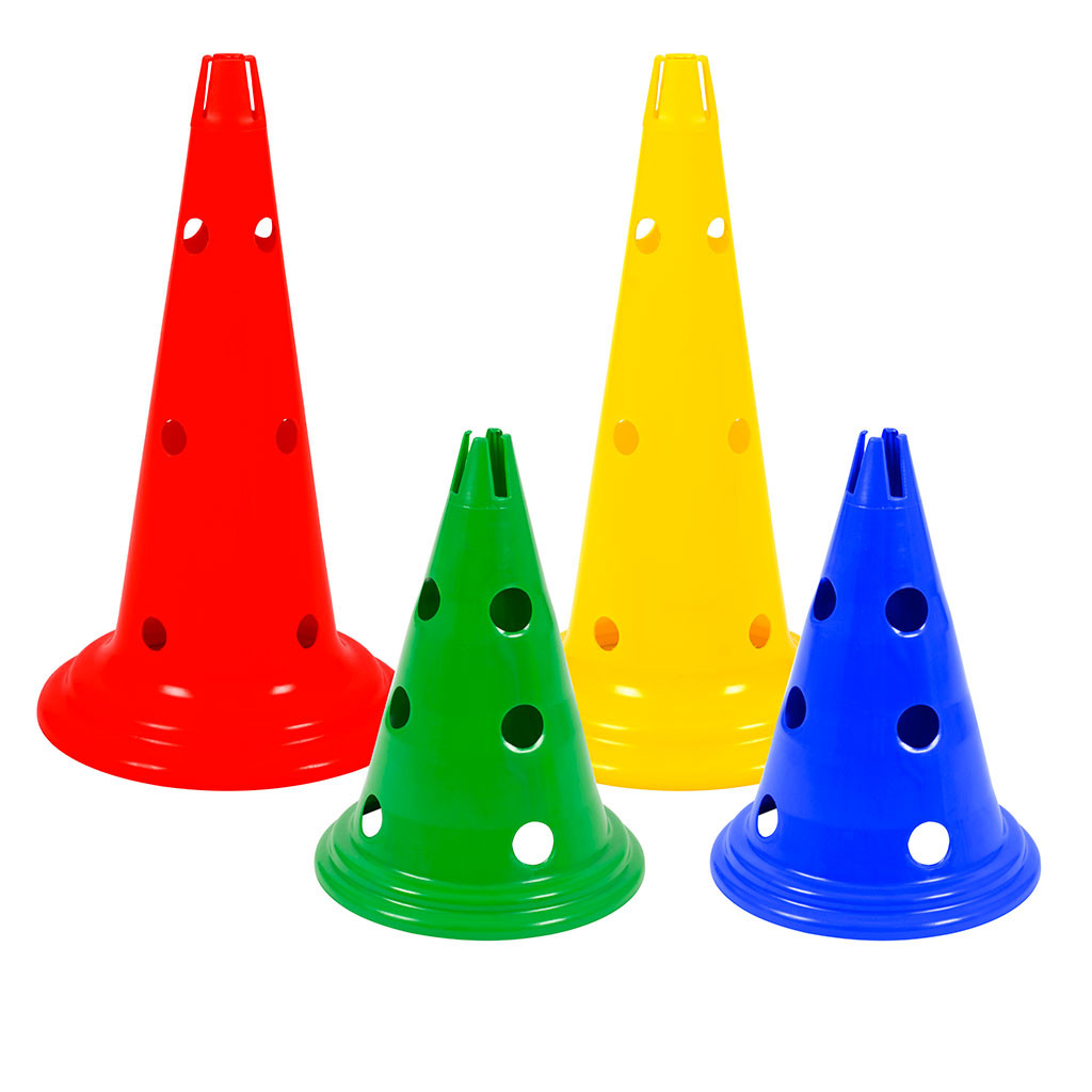 Všestranný sportovní, tréninkový kužel je vybaven 12 otvory, které umožňují sestavovat překážkové dráhy. V horní části má kužel drážky na osazení kruhu. Barevnost je dodávána v závislosti na skladových zásobách. Rozměry: výška 50 cm. Materiál: plast. Věk: 3+.