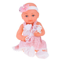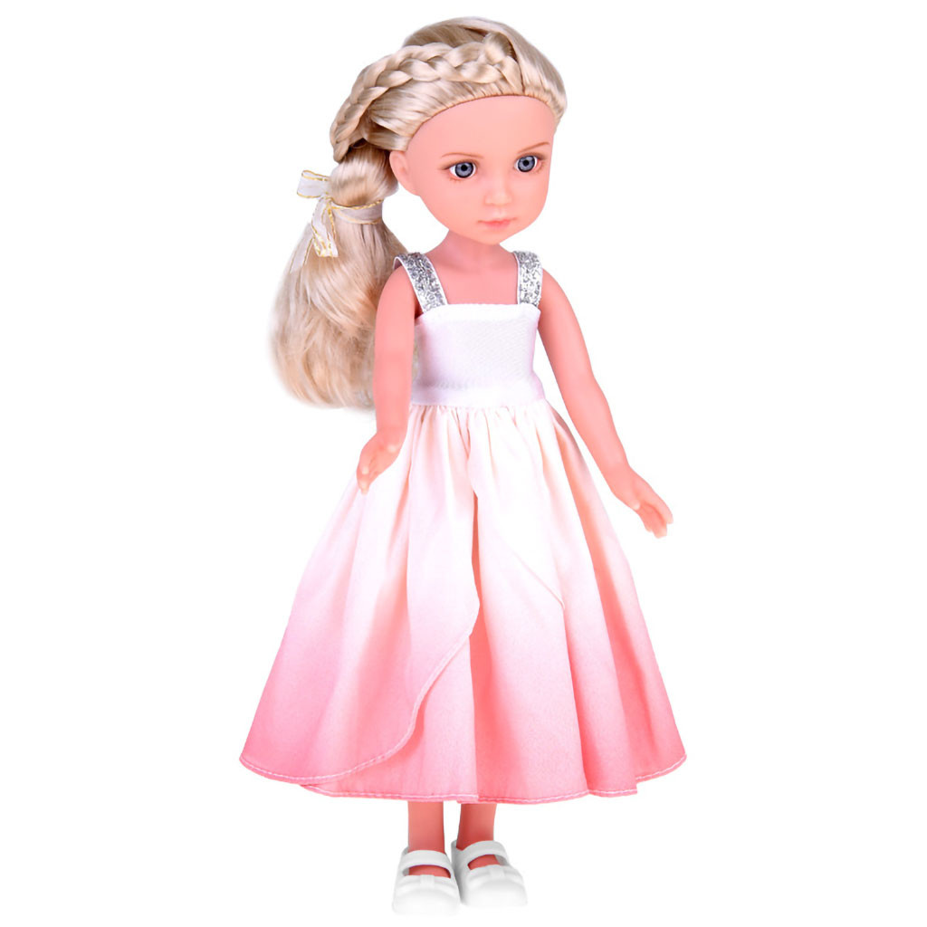 Elegantní panenka v koktejlových šatech, elegantním klobouku as dlouhými blond vlasy zapletenými do elegantního copu. Panenka vyrobená s důrazem na detail je celá z plastu a má pohyblivé končetiny. Rozměry: výška 34 cm. Materiál: plast. Věk: 3+.