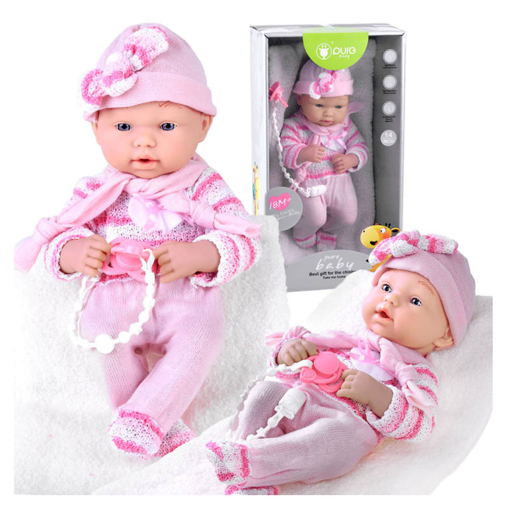 Panenka má realistický vzhled, vypadá jako skutečný novorozenec, pečlivě zpracované detaily a doplňky. Pohyblivé ruce, nohy a hlava umožňují pózovat panenku v různých polohách. Panenka je oblečená v růžové kombinéze a čepičce s mašlí. Čepice a overal jsou vyrobeny z měkkého, na dotek příjemného materiálu. K overalu je připevněný dudlík, který lze panence jednoduše vložit a vyjmout z úst. Řetízek zabraňuje ztrátě dudlíku během hry. Miminko leží na měkké a na dotek příjemné dece. Rozměry: výška 35 cm. Materiál: plast/textil. Věk: 1,5+.