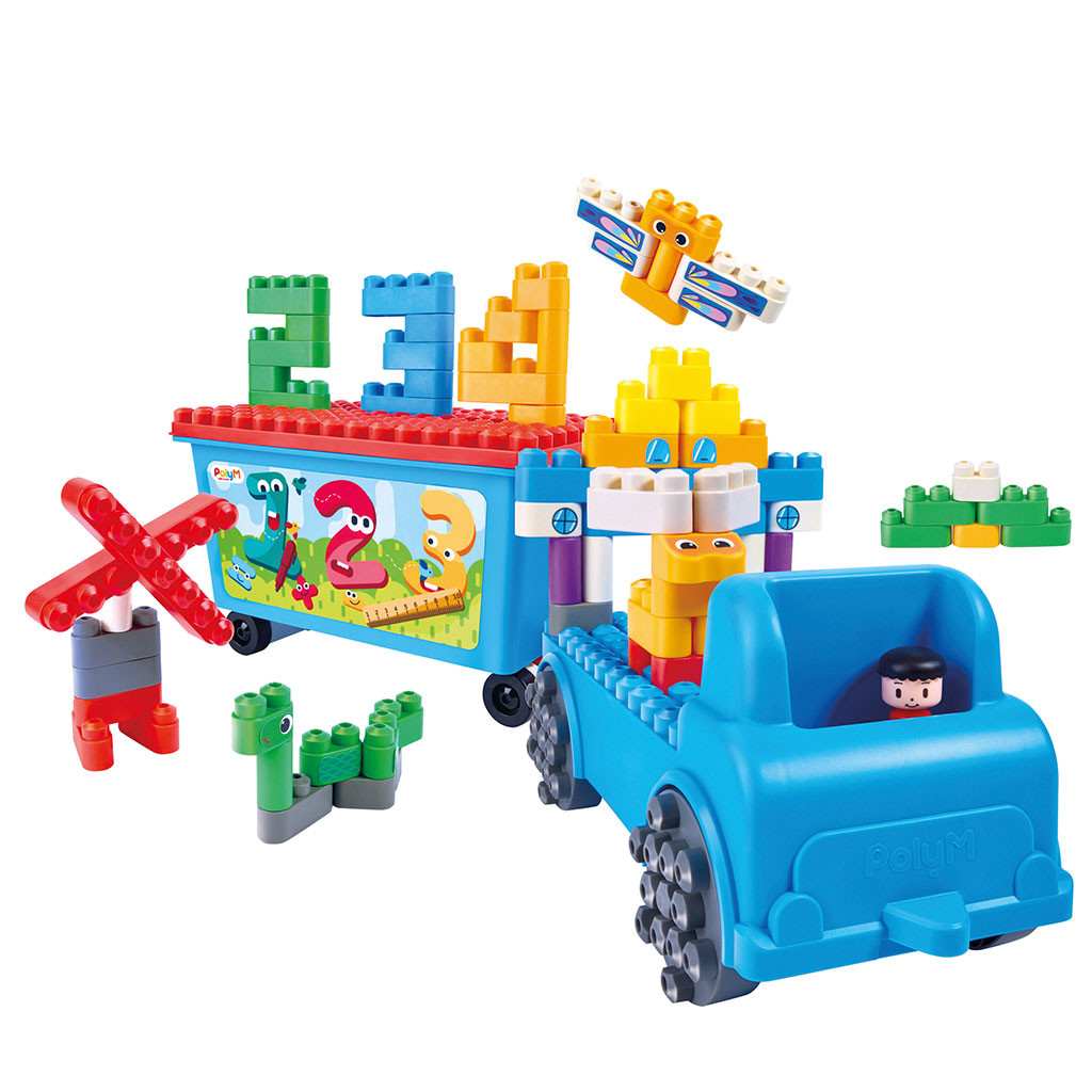 S tímto nákladním vozidlem mohou děti stavět a učit se počítat současně. Ať už počítáte kostky, nebo stavíte různé postavičky – vše záleží jen na dětské fantazii. Box, který je na nakládací ploše auta, můžete odebrat, přidat kolečka a používat jej jako přívěs. Součástí jsou také kartičky, které nabízejí hry pro třídění a počítání. Materiál: plast. Věk: 1,5+.