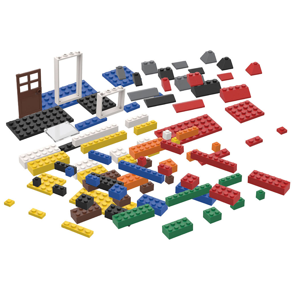 S kostkami v osmi různých barvách, malými plotnami v pěti barvách, střešními taškami ve třech barvách, jakož i okny a dveřmi lze navrhnout nespočet kreativních budov. Různé prvky podporují jemnou motoriku, prostorové myšlení a představivost. S různými velikostmi stavebních bloků mohou děti realizovat své vlastní nápady. Robustní a odolné cihly jsou kompatibilní s kostkami jiných výrobců. Včetně úložného boxu. Rozměry: dvířka - 2,8 x 5,2 x 0,6 cm. Materiál: plast. Věk: 3+.