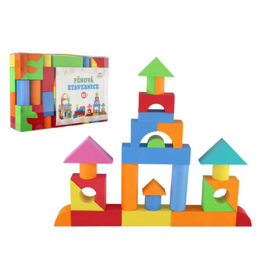 Pestré barevné kostky jsou vyrobeny z měkkého, gumového, netoxického materiálu a jsou příjemné na dotek. Poskytují dětem spoustu zábavy při jejich stavění a zároveň v dětech rozvíjejí kreativitu, motoriku, dovednost a poznávání velikostí a tvarů. Kostky jsou baleny v plastové krabici. Rozměry balení 32 x 21,5 x 7,5 cm. Materiál: EVA pěna. Věk: 3+.