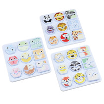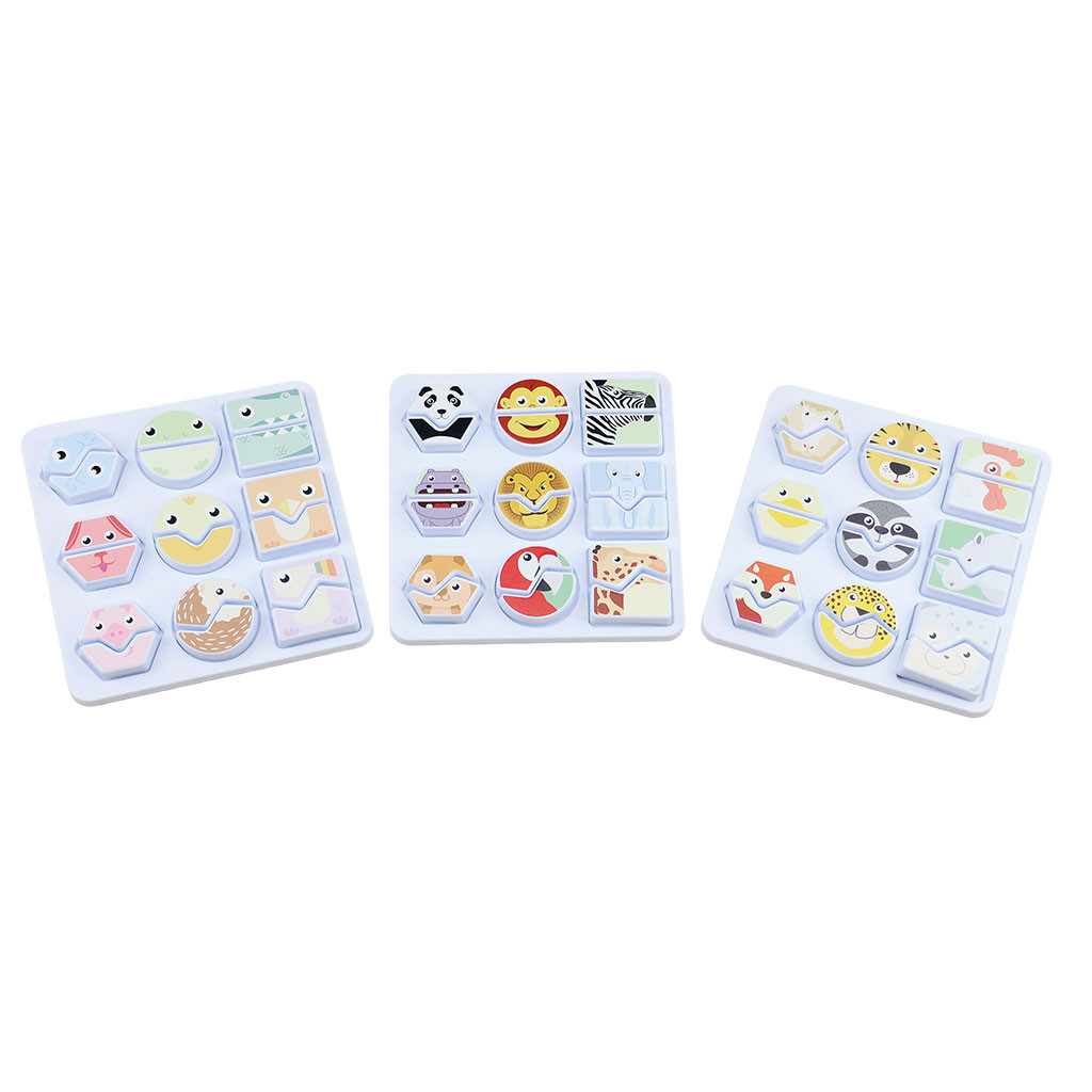Vzdělávací hra, která zábavným způsobem pomáhá rozlišovat a spojovat geometrické tvary s kreslenými obrázky zvířat. Pomocí této hry se děti mohou dozvědět víc o zvířatech a zároveň rozvíjet své kognitivní schopnosti. Přiřazováním půlí zvířat si procvičují rozpoznávání tvarů, vzorů a rozvíjejí si dovednosti při řešení problémů. Zároveň si trénují pozornost, logiku, vizuální vnímání, hmatové vnímání, jemnou motoriku a koordinaci oko – ruka. Balení obsahuje 3 hrací desky s víkem a 54 dílků. Plastový box na uskladnění Activity setů (ET8721) se objednává samostatně. Rozměry základny: 14,5 x 14,5 cm. Materiál: plast. Věk: 3+.