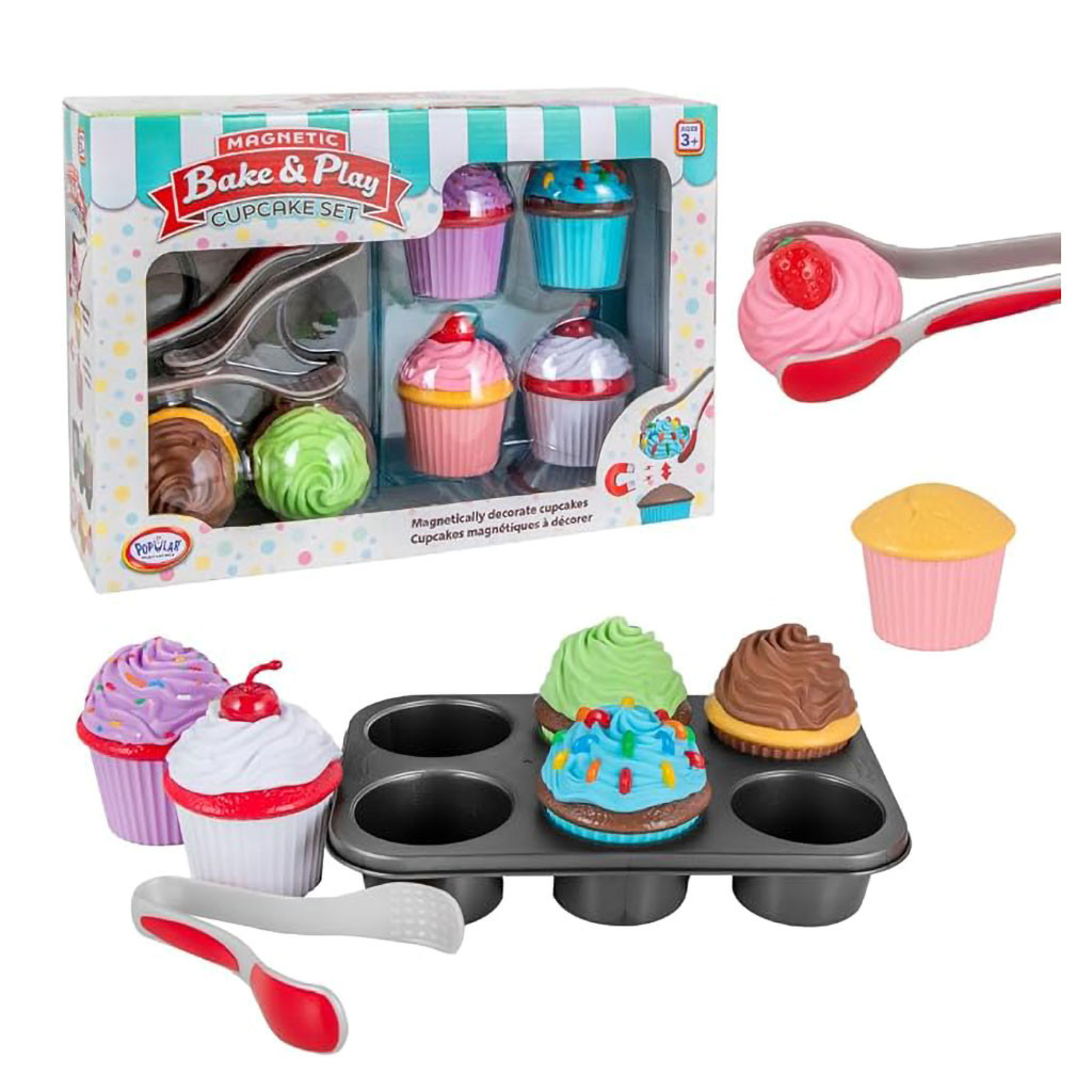 Magnetické spojení umožňuje dětem snadno vytvářet vlastní koláčky a vkládat je do košíčků. Šest lahodných příchutí popustí uzdu fantazii a kreativitě v této 15-dílné sadě (6 příchutí košíčků, 6 forem, 2 kleště, nádoba). Hračka podporuje rozpoznávání barev, jemné motorické dovednosti, rozvoj jazyka, ... plast/magnet. Rozměry balení: 35 x 23,5 x 13,5 cm, rozměry produktu cca 20 cm. Věk: 3+.