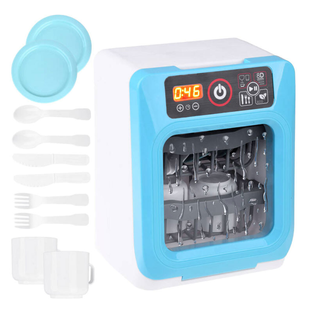 Myčka nádobí je realistická hračka, která obohatí každou dětskou kuchyňku. Má dotykový panel s programy, elektronický displej, tlačítko pro spuštění myčky, otevírací dvířka a výsuvné koše na nádobí. Součástí je také 2x příbor, 2x hrnek a 2x talíř. Hračka má zvukové efekty - zvuk vody, napařování, signál ukončení cyklu a světelný efekt viditelný za chodu myčky. Myčka je napájena 2x1,5 V AA bateriemi, které nejsou součástí balení. Rozměry: 23 x 17 x 14 cm. Materiál: plast. Věk: 3+.