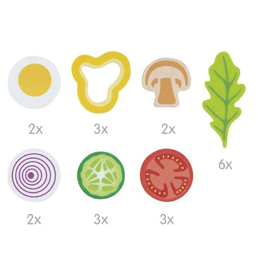 Sada na salát je výborný vzdělávací produkt, který pomáhá dětem pochopit důležitost zdravého stravování. Děti si při přípravě salátu zároveň procvičí základní kuchyňské dovednosti. Set obsahuje 24 ks. Rozměry: ø misky 13 cm, výška 8,2 cm. Materiál: dřevo. Věk: 3+.
