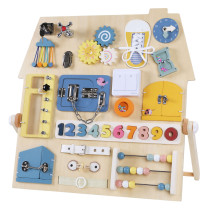 Hrací deska přináší spoustu zábavy, díky které bude moci dítě rozvíjet svoji zručnost, zvědavost a zejména jemnou motoriku. Zámky, pásky a šňůrky dávají dítěti možnost procvičovat různá vázání, spojování, otáčení či otevírání a připravit se tak na každodenní úkony. Kromě aktivit zapojujících smyslové dovednosti deska disponuje čísly, se kterými lze procvičovat jednoduché matematické úkoly. Díky stojanu je hra s deskou pohodlná. Rozměry: 65 x 63 x 10 cm. Materiál: dřevo/kov/textil. Věk: 3+.