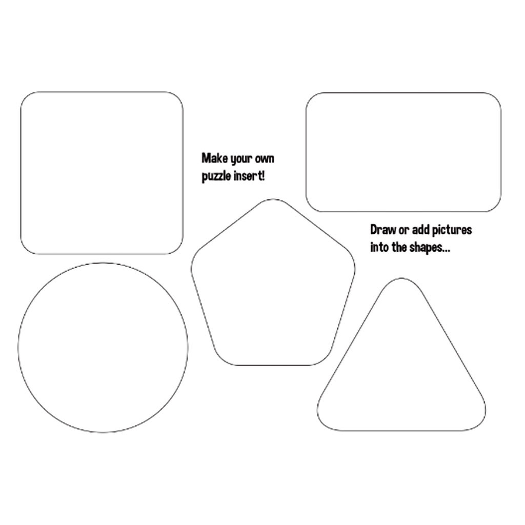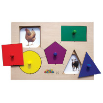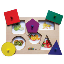 Puzzle vkládačka se 6 díly a 4 předlohami je naučná netradičně pojatá edukativní deska. Deska má 5 vyfrézovaných geometrických otvorů a 5 příslušných barevných puzzle dílků s úchyty pro snadný úchop a boční otvor pro zasunutí předloh. Dodává se společně se 4 zalaminovanými předlohami formátu A4, na kterých je vždy 5 obrázků a také s jedním prázdným listem pouze s naznačenými tvary pro dopracování předlohy dle vlastní fantazie. Vyberte si jednu ze čtyř tematických předloh, obsahující reálné fotografie a zasuňte do dřevěné desky. Potom zakryjte obrázky 5 příslušnými dřevěnými puzzle dílky a snažte si vzpomenout, pod kterým tvarem se ukrývá jaký obrázek. Tato paměťová deska představuje skvělý způsob zábavy a zlepšování paměťových dovedností a zároveň učí děti barvy a tvary. Sada obsahuje: 1 hrací deska, 5 dílů různých tvarů, 4 předlohy a 1 prázdnou pro vlastní fantazii. Rozměry: 24 x 20 cm. Materiál: dřevo/laminované fólie. Věk: 3+.