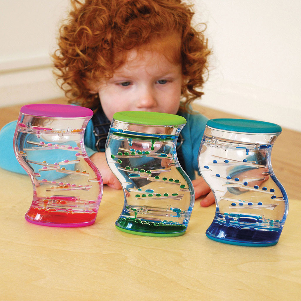 Barevné kapky se sklouznou dolů cik-cak jako kuličky v závodě. Klouzání je v této hře možné, protože tyto dvě kapaliny – voda a olej – se nepromíchají. Pokud tubu otočíte, hra se začne znovu. Rozměry: 12,5 x 8,5 cm. Materiál: plast/voda/olej. Věk: 3+.