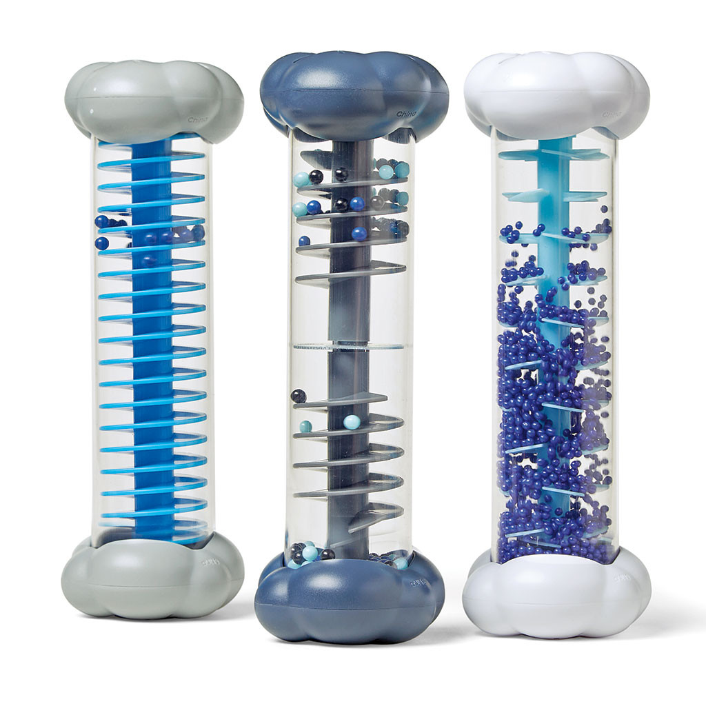 Tyto podmanivé smyslové tuby pomáhají dětem uklidnit se a soustředit se a přitom se učí i o zvucích počasí. Každá trvale utěsněná tuba má zvuk jiného počasí: jemný zvuk mrholení, uklidňující zvuk deště a hlasitější zvuky bouře. Rozměry: výška 20,5 cm. Materiál: plast. Věk: 3+.