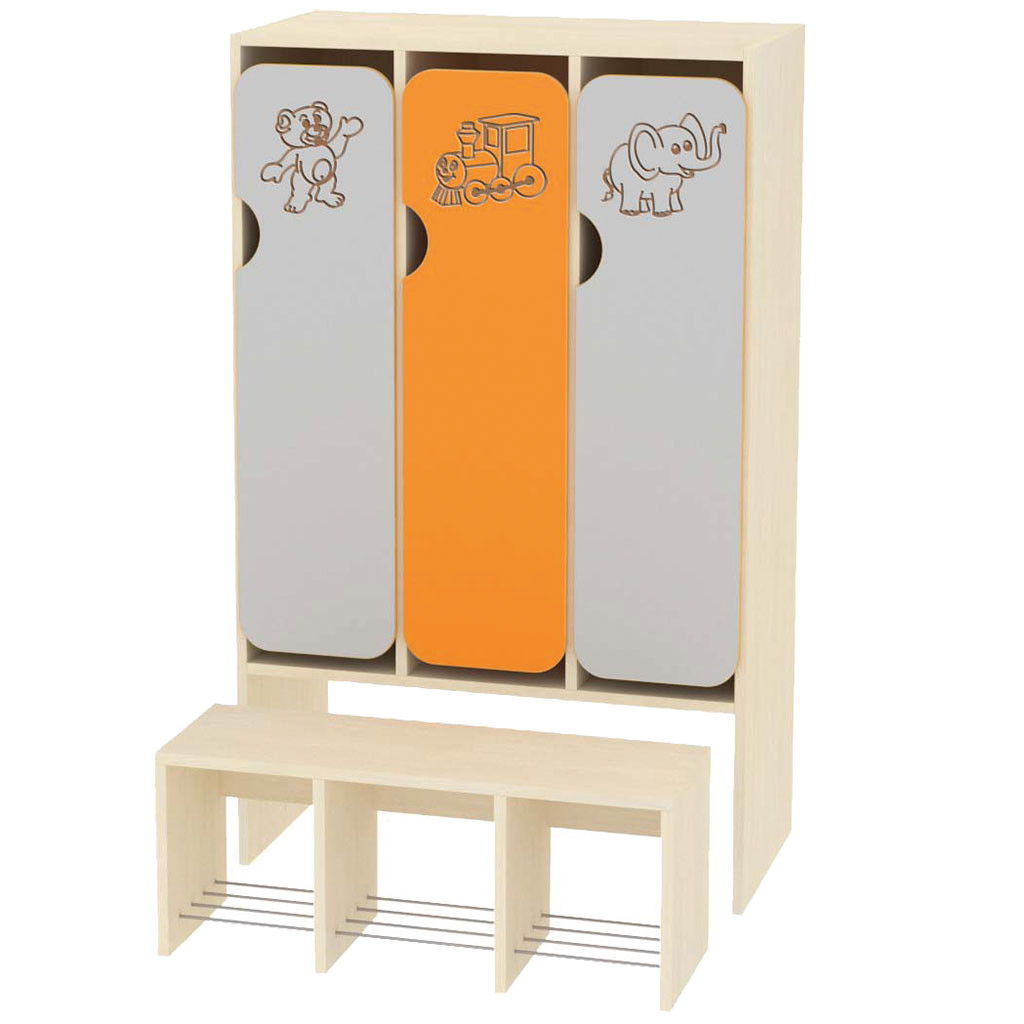 Šatny jsou vyrobeny z 18 mm DTD desky, která má zaoblenou ABS bezpečnostní hranu o tloušťce 2 mm. Dvířka jsou vyrobena ze 12 mm MDF desky, mají zaoblenou hranu. Na dvířka lze frézovat vzory, na výběr máte 92 motivů. Součástí šatny je odnímatelná lavička s roštem. Každá přihrádka má jeden dvojitý háček, který si, za příplatek 80 Kč na jednu buňku, můžete zaměnit za tyč na ramínko. V tom případě za kód připište písmeno T. Vybrat si můžete korpus javor nebo buk.