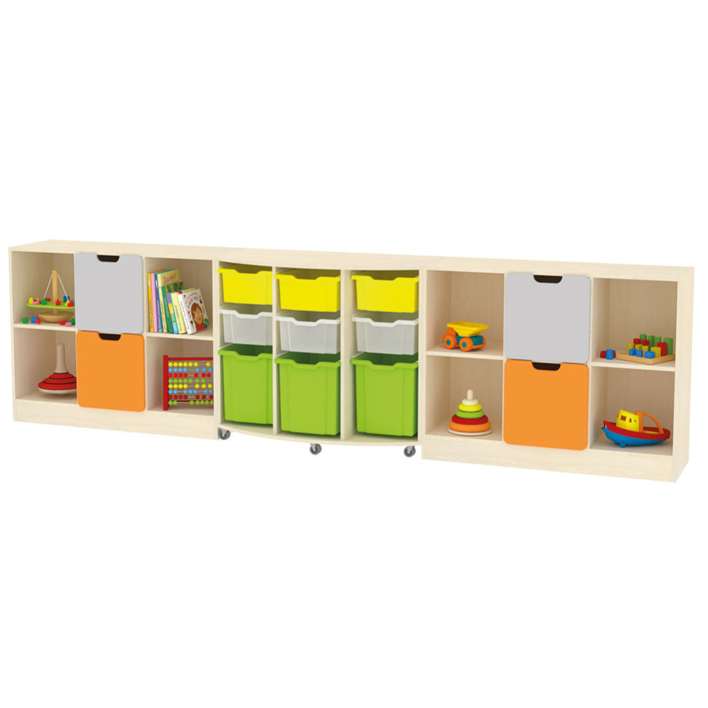 3D Sestavy jsou vyrobeny z 18 mm DTD desky, která má zaoblenou ABS bezpečnostní hranu o tloušťce 2 mm. Dvířka jsou vyrobeny ze 16 mm MDF desky, jsou potaženy barevnou fólií a také mají zaoblenou hranu. Vybrat si můžete korpus javor nebo buk. Máte možnost vybrat si sestavu podle našeho návrhu, (obrázek), nebo si vytvořit vlastní sestavu kombinací 3D skříněk z naší nabídky, barevností a motivů podle vašich potřeb. Na výběr máte 9 barev, 92 samostatně frézovaných motivů, 41 příběhů a nespočet kombinací. Matrace se objednává samostatně pro všechny sestavy s domečkem- možnost výběru barvy. Cena bez kontejnerů Gratnells a vodících lišt - možnost výběru barvy.