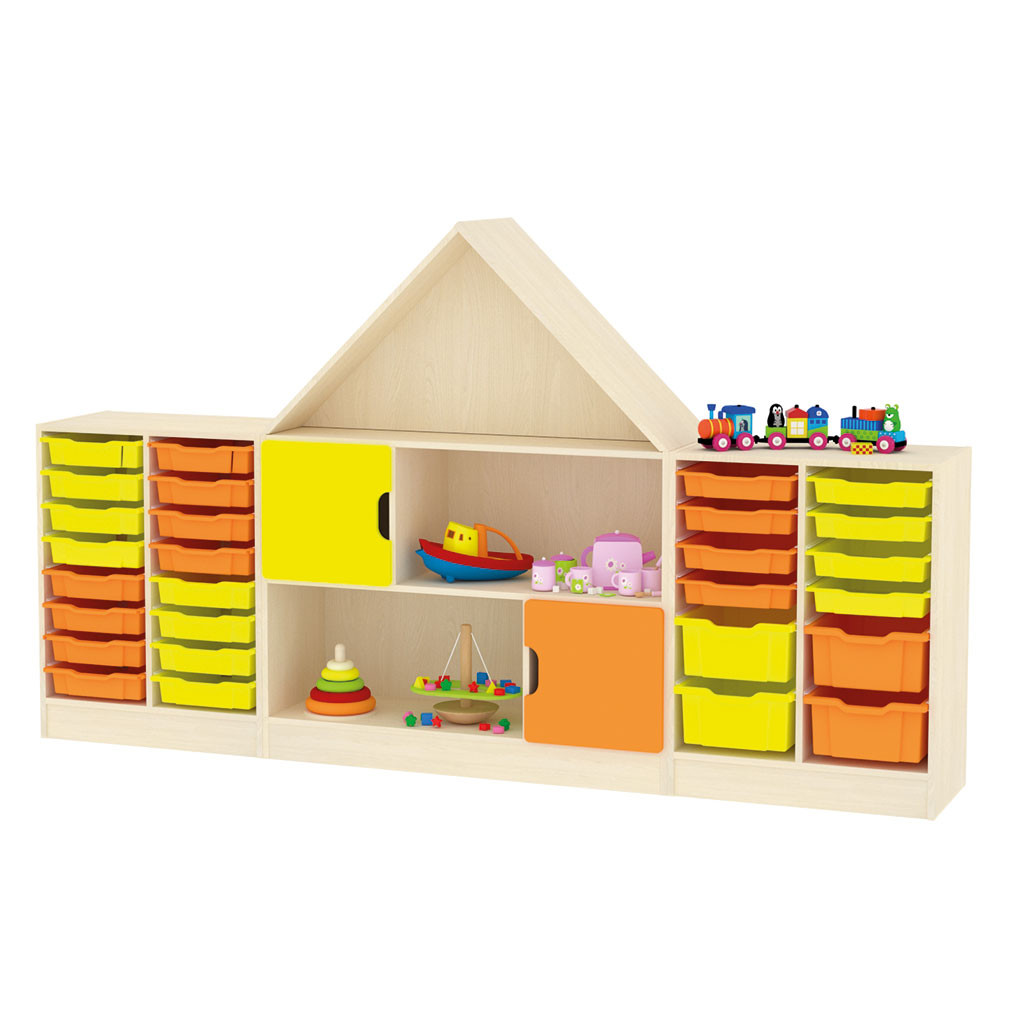 Sestavy City jsou vyrobeny z 18 mm DTD desky, která má zaoblenou ABS bezpečnostní hranu o tloušťce 2 mm. Dvířka jsou vyrobena ze 16 mm MDF desky, jsou potažena barevnou fólií a také mají zaoblenou hranu. Vybrat si můžete korpus javor nebo buk. Součástí ceny jsou matrace a nástěnné aplikace při sedacích skříňkách. Cena bez matrací v domečcích (možnost výběru barvy čela domečku), bez kontejnerů Gratnells a vodicích lišt - možnost výběru barvy.