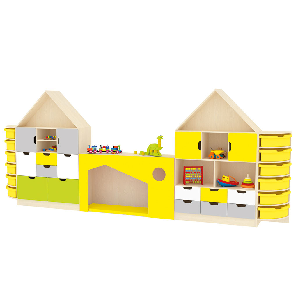 Sestavy City jsou vyrobeny z 18 mm DTD desky, která má zaoblenou ABS bezpečnostní hranu o tloušťce 2 mm. Dvířka jsou vyrobena ze 16 mm MDF desky, jsou potažena barevnou fólií a také mají zaoblenou hranu. Vybrat si můžete korpus javor nebo buk. Součástí ceny jsou matrace a nástěnné aplikace při sedacích skříňkách. Cena bez matrací v domečcích (možnost výběru barvy čela domečku), bez kontejnerů Gratnells a vodicích lišt - možnost výběru barvy.