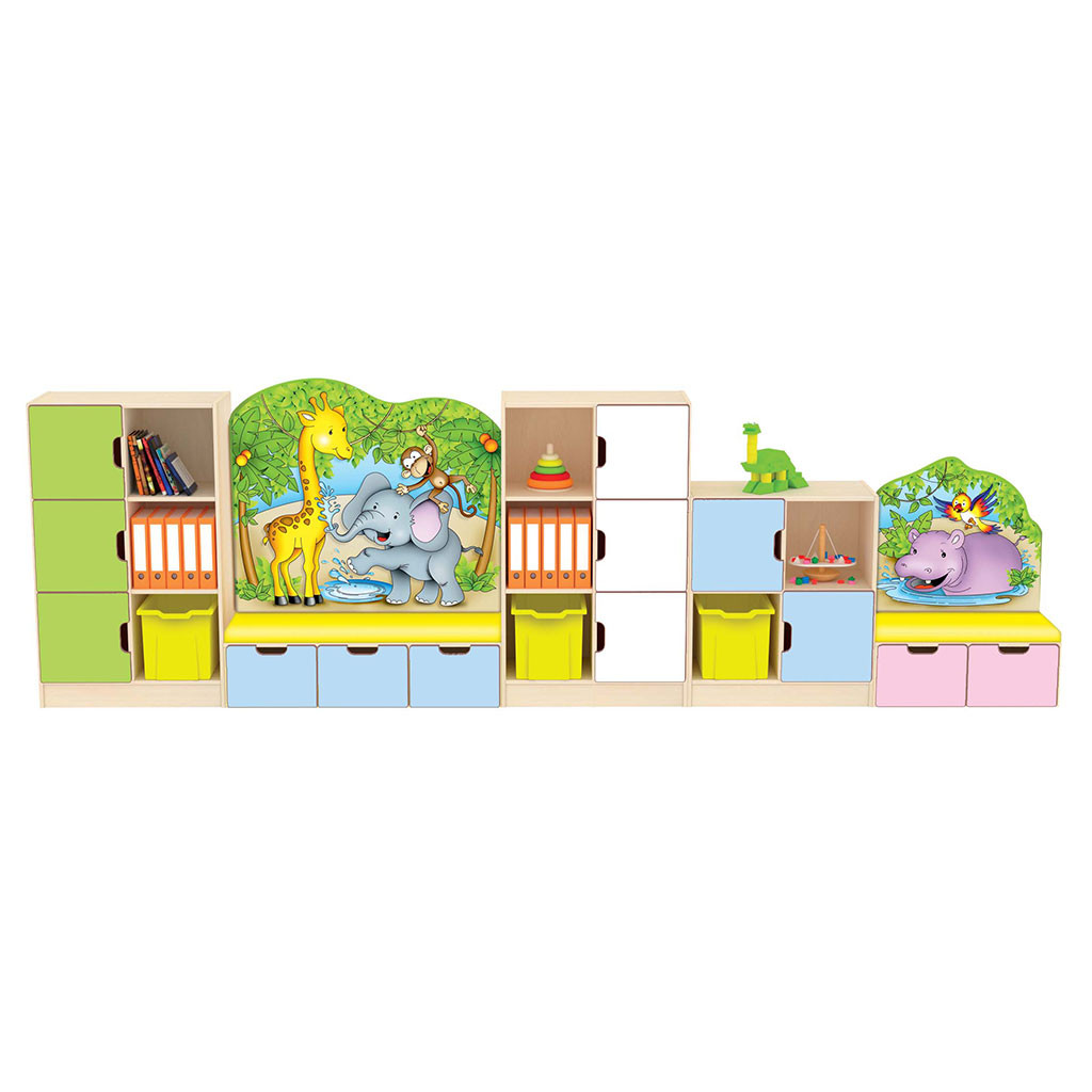 Nábytkové sestavy Molitánek jsou vyrobeny z 18 mm DTD desky, která má zaoblenou ABS bezpečnostní hranu o tloušťce 2 mm. Dvířka jsou vyrobeny ze 12 mm laminované MDF desky, mají zaoblenou hranu. Vybrat si můžete korpus javor nebo buk. Máte možnost vybrat si sestavu podle našeho návrhu, (obrázek), nebo si vytvořit vlastní sestavu kombinací skříněk podle vašich potřeb. V ceně sestavy jsou i dekorační molitany a matrace na sedacích skříňkách. V nabídce máme 5 barev matrací a různé dekorační molitany, které si také můžete zkombinovat podle vašich představ.