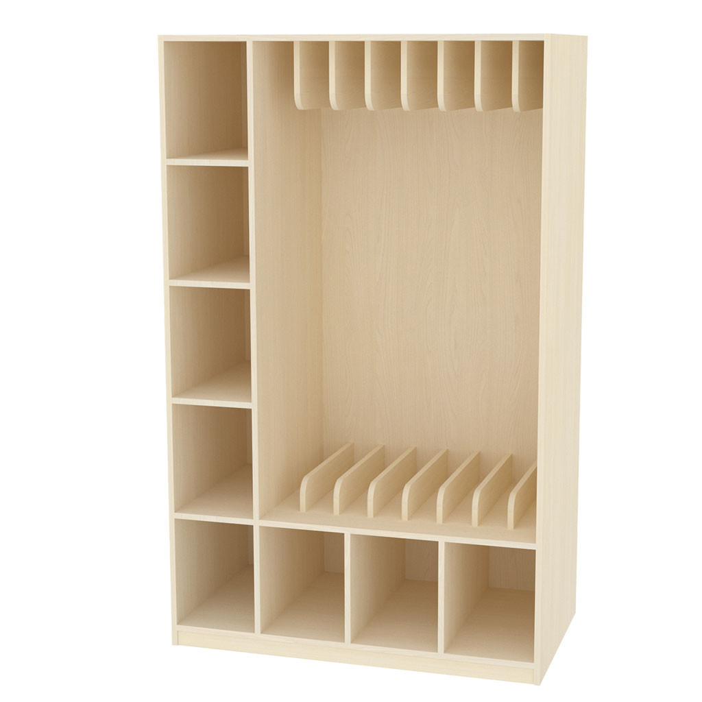 Skříň je vyrobena z 18 mm DTD desky, která má zaoblenou ABS bezpečnostní hranu o tloušťce 2 mm. Na výběr máte korpus javor nebo buk. Skříň je určena pro uložení lůžkovin a 8 ks rozkládacích lehátek LEH3. Dveře se objednávají samostatně.