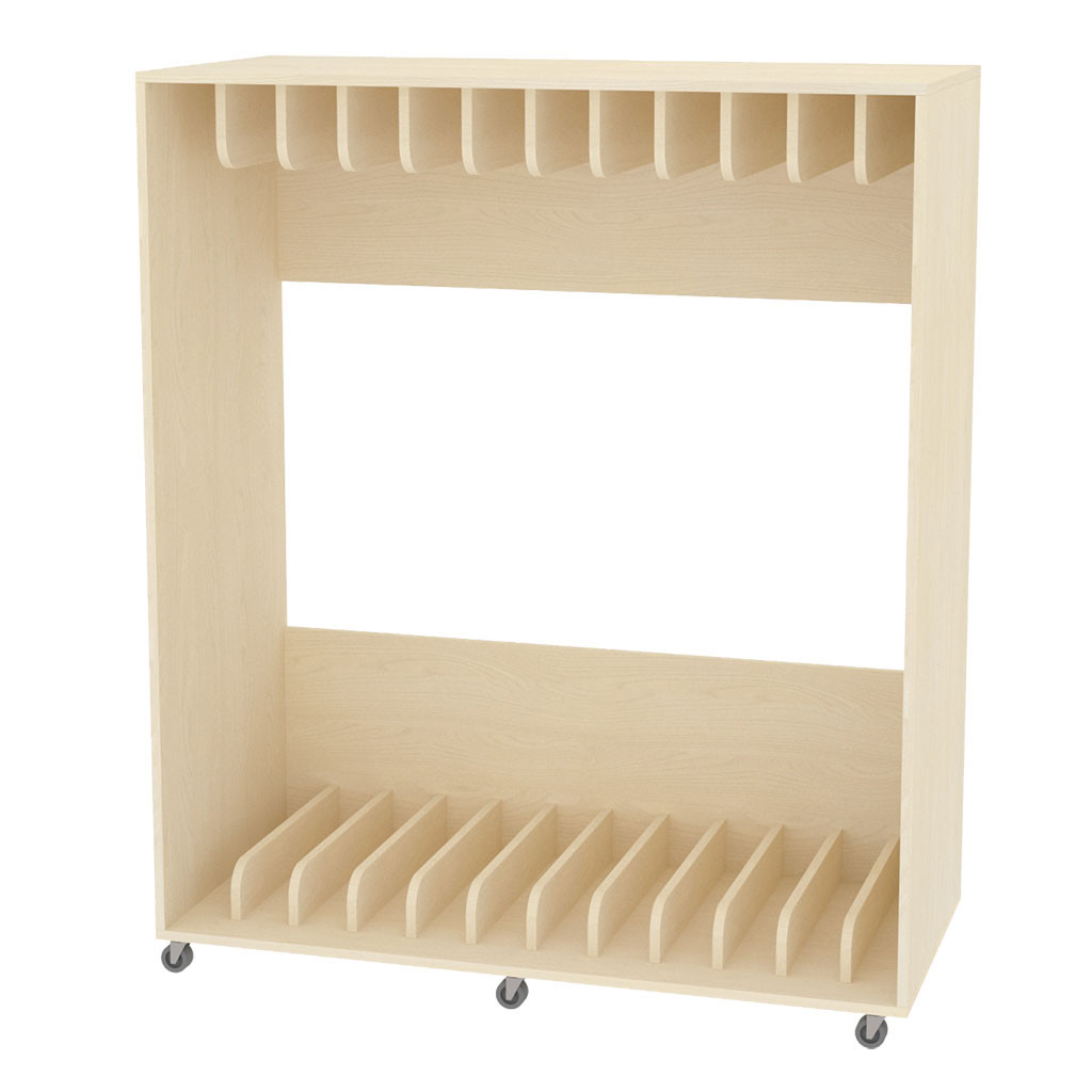 Mobilní skříň na matrace a lehátka je vyrobena z 18 mm DTD desky, která má zaoblenou ABS bezpečnostní hranu o tloušťce 2 mm. Na výběr máte korpus javor nebo buk, má pevnou konstrukci a je určena k odkládání 12 ks sklápěcích lehátek nebo matrací. Skříň je na kolečkách, takže si ji velmi snadno přesunete tam, kde zrovna potřebujete.
