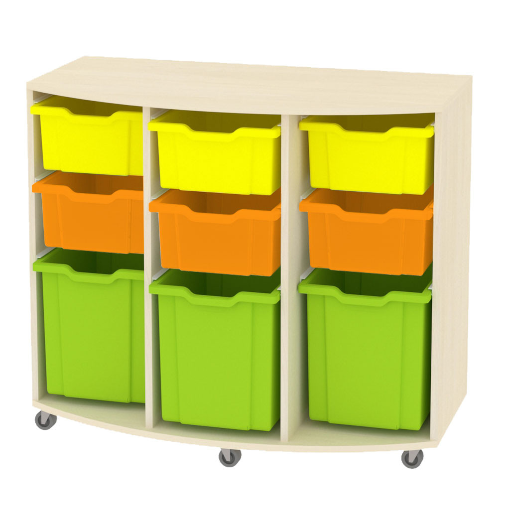 Skříňka je vyrobena z 18 mm DTD desky, která má zaoblenou ABS bezpečnostní hranu o tloušťce 2 mm. Na výběr máte korpus javor nebo buk. Ceny skříněk jsou bez plastových kontejnerů a vodících lišt. Kontejnery a lišty se objednávají samostatně.