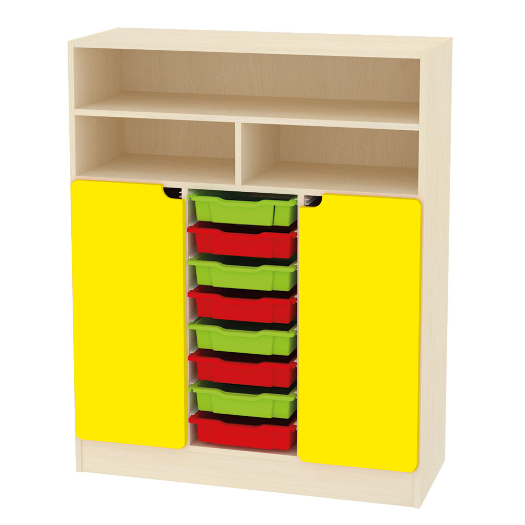 Skříňka je vyrobena z 18 mm DTD desky, která má zaoblenou ABS bezpečnostní hranu o tloušťce 2 mm. Na výběr máte korpus javor nebo buk. Ceny skříněk jsou bez plastových kontejnerů a vodících lišt. Kontejnery a lišty se objednávají samostatně.